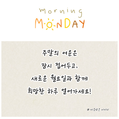 "월요일의 시작은 밝은 마음에서 옵니다.