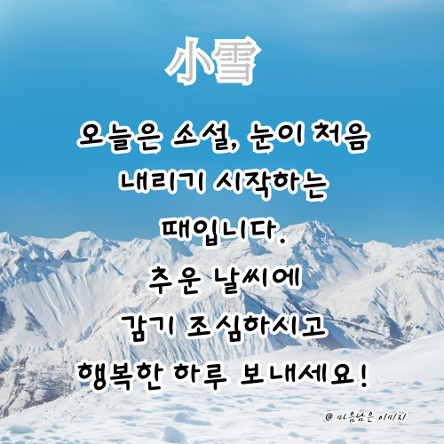 | 절기 "소설" 인사말 첫눈 오는 이미지 무료 다운로드 (0) | 2024.11.17 |