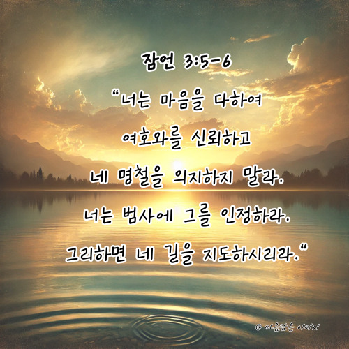 "너는 마음을 다하여 여호와를 신뢰하고 네 명철을 의지하지 말라. 너는 범사에 그를 인정하라. 그리하면 네 길을 지도하시리라."