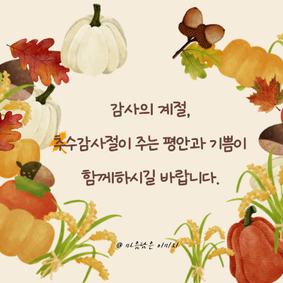 추수감사절의 평온함과 기쁨을 전하는 메시지입니다.