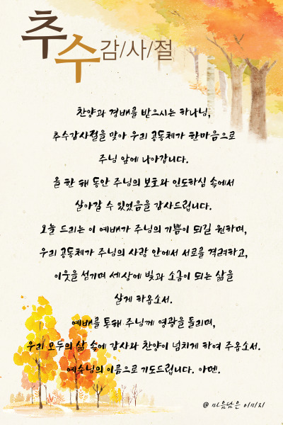 | 추수감사 예배 대표기도문 이미지 무료 다운로드 (0) | 2024.11.14 |