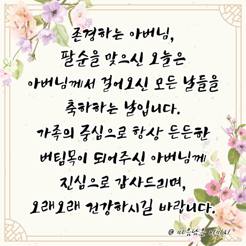 앞으로도 아버지와 함께하는 시간이 더 소중하게 빛나길 바랍니다."